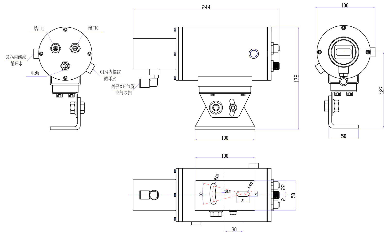 ● 不(bu)锈(xiu)钢外壳,可(ke)通水、气停止冷却