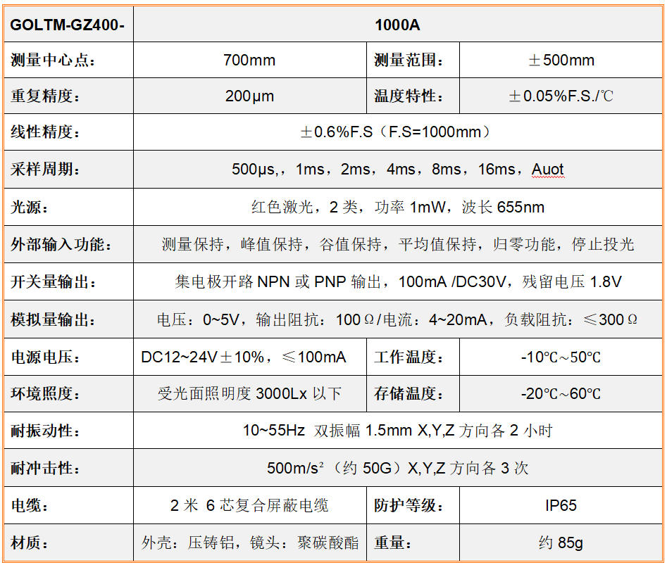 GOLTM-GZ400-1000A型严密激光机器测距仪可以用于高精确、高时延的侧量物块位移、尽寸、高宽比及高宽比差,装置设备按装简要,科技突显坚决隔断或坚决隔断,必备摹拟量填写及触点开关量填写。🍎 ● 激光三(san)角形丈量(liang)道理,高(gao)精度、高(gao)速(su)率、高𝓰(gao)活络度丈量(liang)细小位移